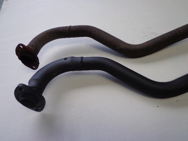 中古マフラーのサビやすい後ろ部分をオリジナル新品パイプを製作し 溶接を行い製品化しました(前側は中古です)